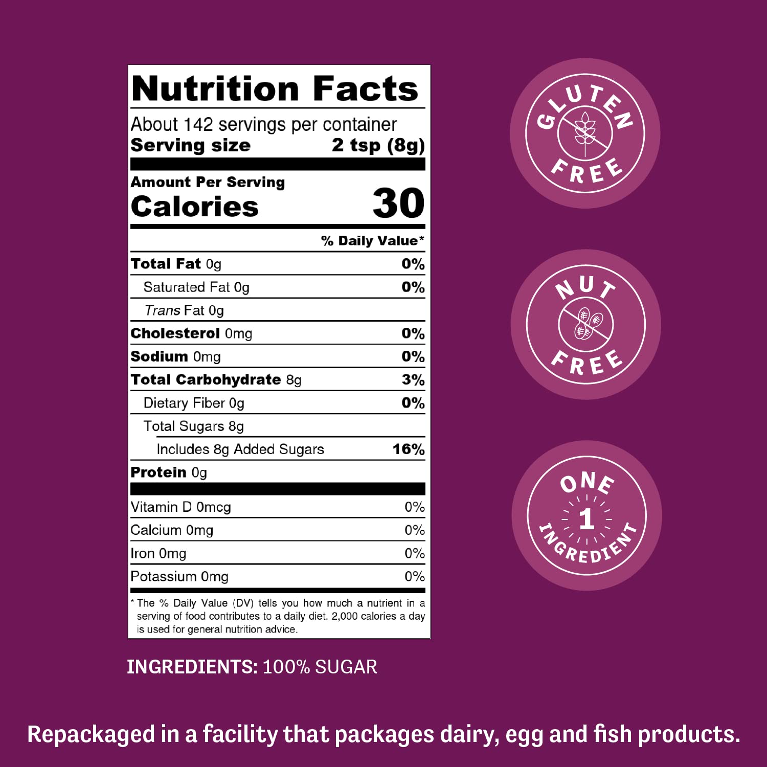 The golden variety is unrefined and processed in a way that maintains. It has no added starch. Yes sugar is gluten-free.
